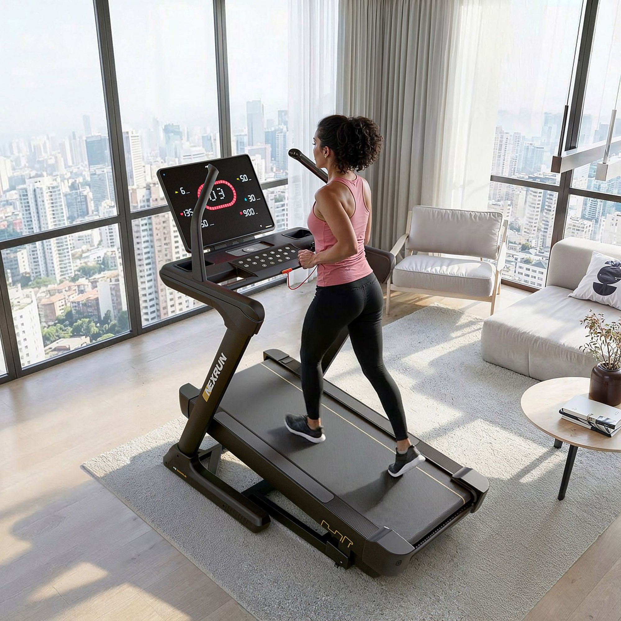 Dzięki 20 gotowym programom treningowym ta bieżnia treningowa prowadzi Cię przez różne etapy pracy nad formą. Programy zostały podzielone na logiczne bloki – od Easy Start, przez Fat Burn i Cardio Boost, aż po Speed Intervals i Power Challenge. Trening angażuje nie tylko mięśnie nóg (uda, pośladki, łydki), ale także core i górne partie ciała, wspierając ogólną sprawność. Ruch biegowy jest przyjazny dla kolan, a odpowiednia geometria i amortyzacja pomagają zmniejszyć obciążenia stawów, co ma duże znaczenie przy częstych treningach.