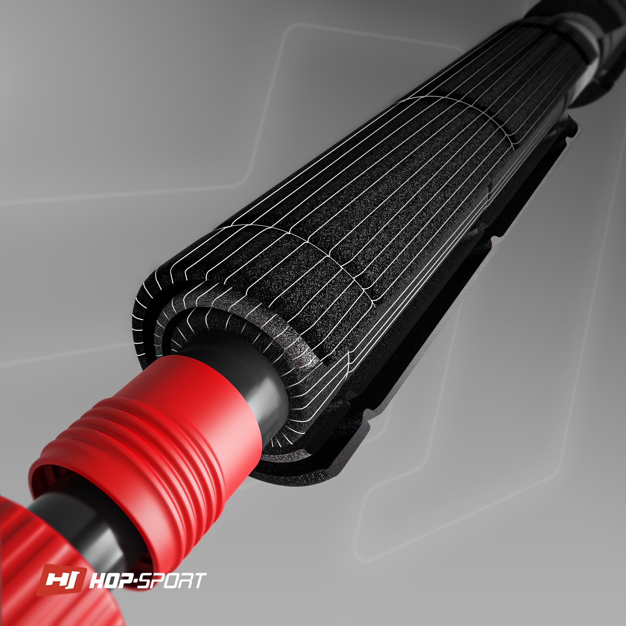 Ośmiopunktowy system nacisku, antypoślizgowe gumowe stopki. Trójwarstwowe obicie. Trening z wykorzystaniem drążka Hop-Sport pozwala poprawić siłę.