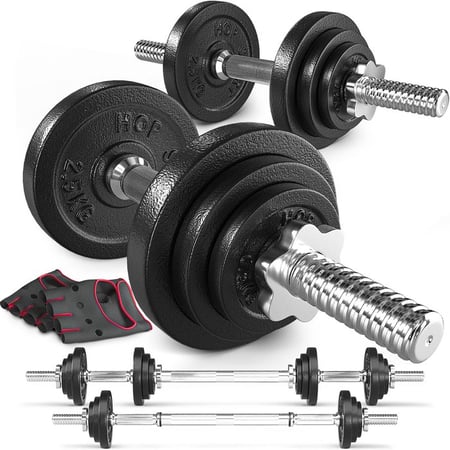 Zestaw hantli żeliwnych 2x10kg z przedłużanym gryfem to jedyny w swoim rodzaju sprzęt do treningu siłowego 2w1. W skład kompletu wchodzi łącznik ze stali, dzięki któremu zwiększysz długość gryfu oraz założysz na niego obciążenie w trzech różnych wariantach. Zestaw hantli żeliwnych 2x10kg umożliwia wykonanie wielu ćwiczeń z zakresu treningu siłowego – od wiosłowania, przez wyciskanie, aż po wznosy i przysiady. Do kompletu dołączyliśmy również wygodne rękawiczki neoprenowe do ćwiczeń oraz nakrętki do ciężarów, stabilizujące obciążenie.