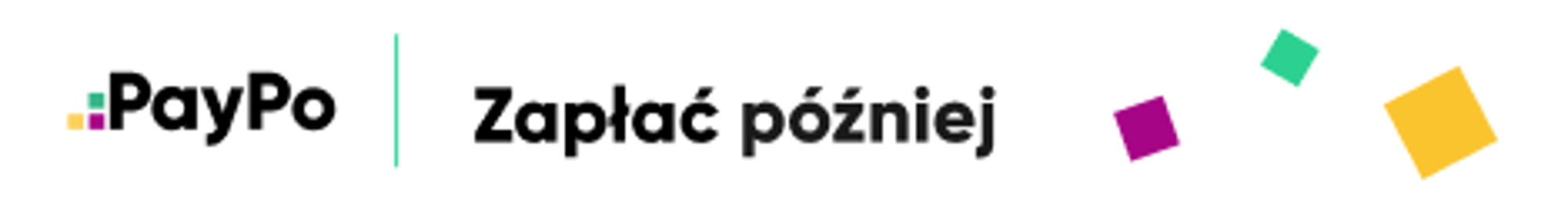 PayPo jest to nowa, całkowicie bezpieczna dla Klientów, forma płatności. Kupując za pomocą PayPo nie musisz płacić z góry za swoje zamówienie. Po otrzymaniu towaru masz aż 30 dni na to, aby za niego zapłacić, dokonać zwrotu albo rozłożyć płatność na wygodne raty. I to wszystko bez żadnych, dodatkowych kosztów. Kupuj komfortowo z PayPo!