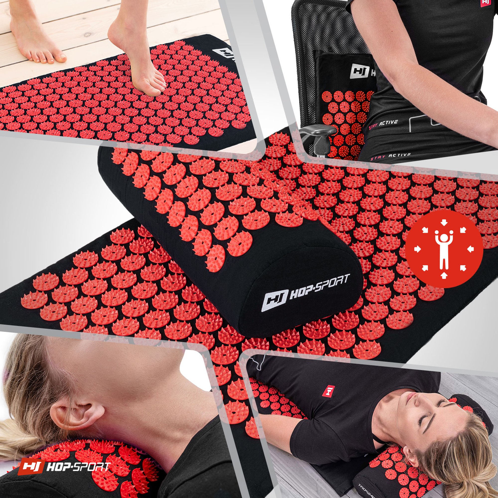 Zestaw do akupresury marki Hop Sport to proste w użyciu i skuteczne narzędzie do relaksacji, które poprzez swoje działanie pomaga usuwać napięcia w mięśniach oraz poprawia krążenie krwi. Jest obowiązkowym narzędziem dla każdego, kto zmaga się z uciążliwymi bólami pleców i głowy lub z bezsennością.