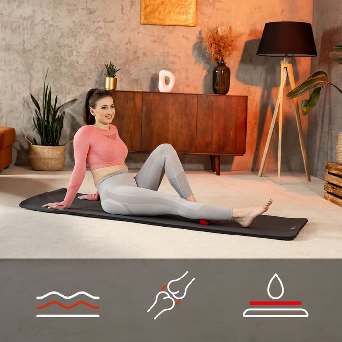 Z uwagi na niestandardowe wymiary maty, wynoszące 190 x 80 cm, zyskujesz dodatkową przestrzeń i swobodę w treningu. Wodoodporność i łatwość w utrzymaniu w czystości, to kolejne atuty produktu, które podnoszą higienę korzystania z maty, nawet podczas najbardziej intensywnych ćwiczeń.