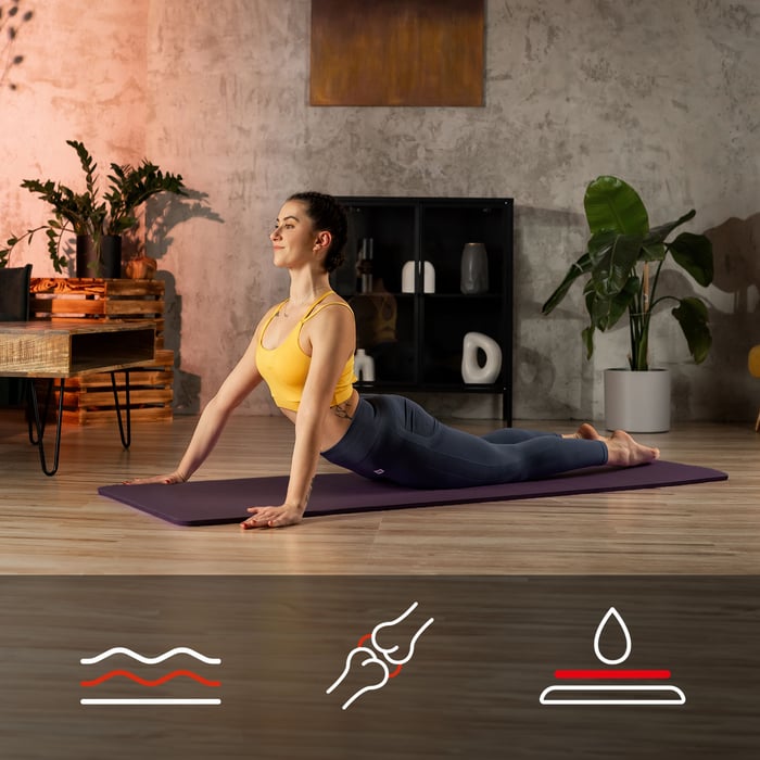 Z uwagi na długość maty, wynoszącą 190 cm, doskonale sprawdzi się ona dla osób o większym wzroście, lub wszystkich tych, którzy cenią sobie większą przestrzeń i swobodę treningową. Wodoodporność i łatwość w utrzymaniu w czystości, to kolejne atuty produktu, które podnoszą higienę korzystania z maty, nawet podczas najbardziej intensywnych ćwiczeń.
