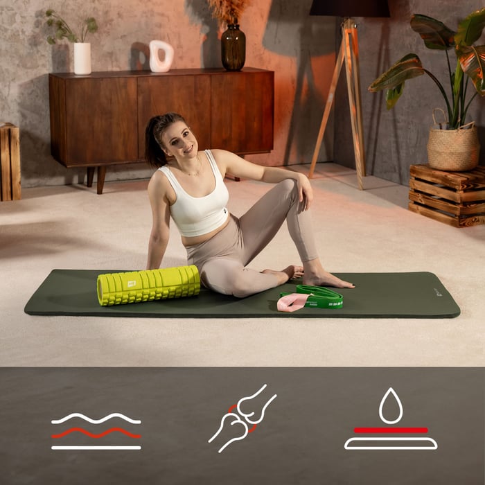 Z uwagi na długość maty, wynoszącą 190 cm, doskonale sprawdzi się ona dla osób o większym wzroście, lub wszystkich tych, którzy cenią sobie większą przestrzeń i swobodę treningową. Wodoodporność i łatwość w utrzymaniu w czystości, to kolejne atuty produktu, które podnoszą higienę korzystania z maty, nawet podczas najbardziej intensywnych ćwiczeń.