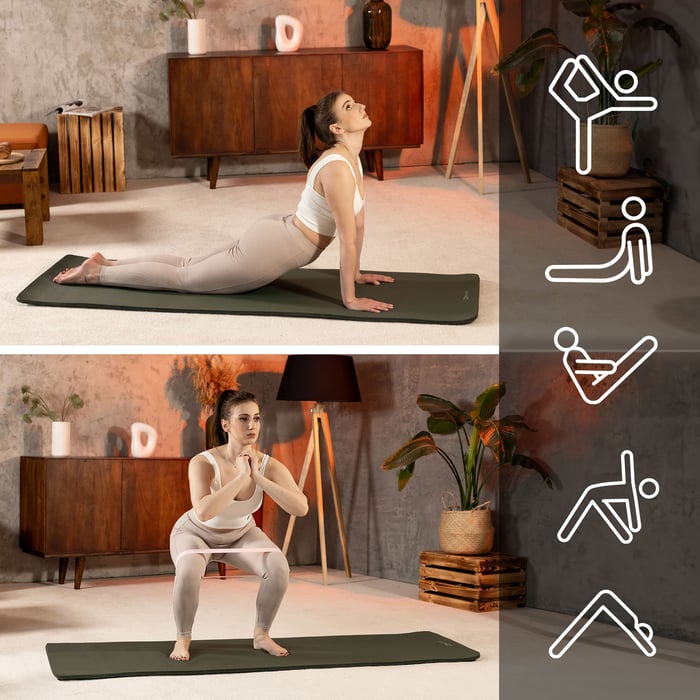 Mata NBR 1 cm znajdzie zastosowanie w różnego rodzaju ćwiczeniach. Możesz trenować na niej zarówno jogę, pilates oraz wykonywać tzw. ćwiczenia o niskim wpływie, takie jak plank, skłony czy ćwiczenia na brzuch. Połączenie grubości 1 cm z większymi wymiarami maty, gwarantuje wygodę i bezpieczeństwo każdej sesji treningowej. Dodatkowo, unikalna struktura maty zapewnia doskonałą przyczepność, co z kolei umożliwia stabilne trzymanie pozycji oraz precyzyjne wykonywanie skomplikowanych ruchów lub asan.