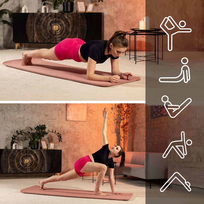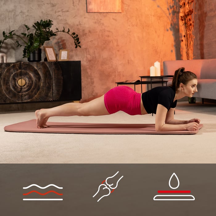 Mata NBR 1 cm znajdzie zastosowanie w różnego rodzaju ćwiczeniach. Możesz trenować na niej zarówno jogę, pilates oraz wykonywać tzw. ćwiczenia o niskim wpływie, takie jak plank, skłony czy ćwiczenia na brzuch. Połączenie grubości 1 cm z większymi wymiarami maty, gwarantuje wygodę i bezpieczeństwo każdej sesji treningowej. Dodatkowo, unikalna struktura maty zapewnia doskonałą przyczepność, co z kolei umożliwia stabilne trzymanie pozycji oraz precyzyjne wykonywanie skomplikowanych ruchów lub asan.