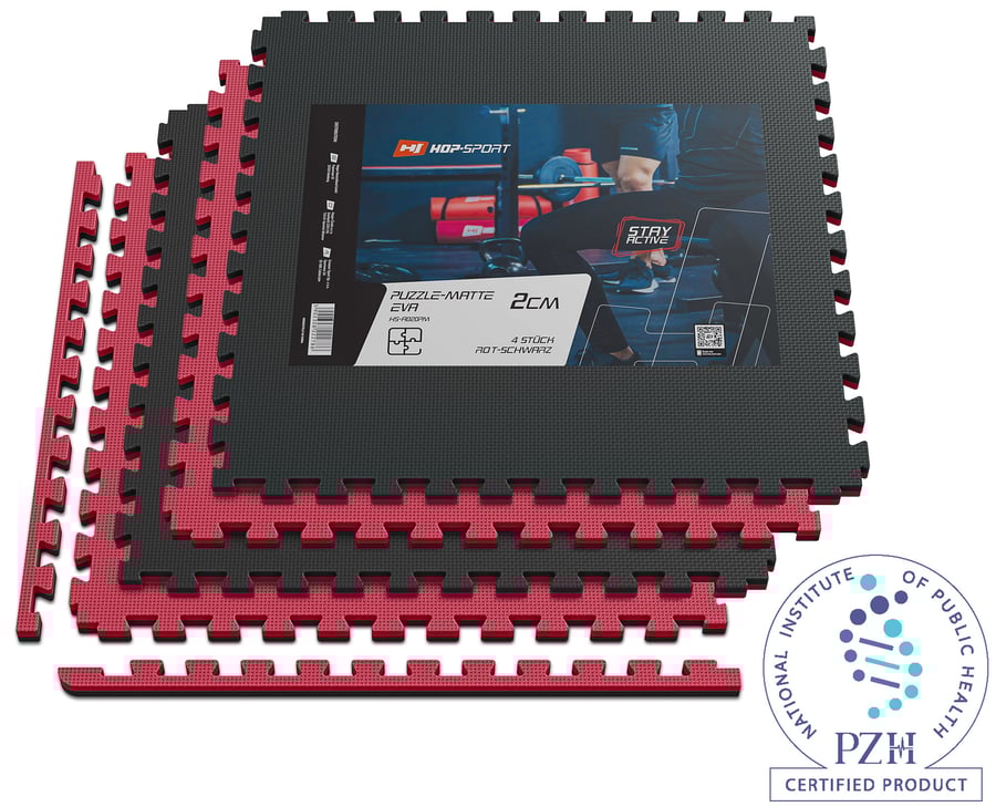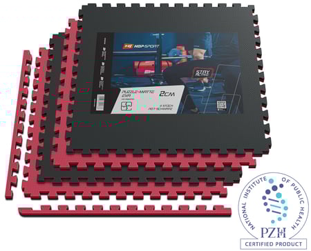 Mata Puzzle EVA 2cm 4 sztuki HS-A020PM czarno/czerwona to uniwersalny produkt, który zapewni ochronę podłoża podczas domowych treningów i nie tylko!