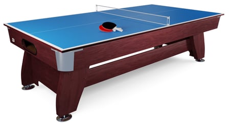 Dwustronna nakładka na stół bilardowy, ping-pong i blat w kolorze wiśnia w rozmiarze 8ft. Nakładka jest doskonałym sposobem na zmianę gry w bilarda na ping-ponga. Pełnić może też funkcje blatu stołowego.