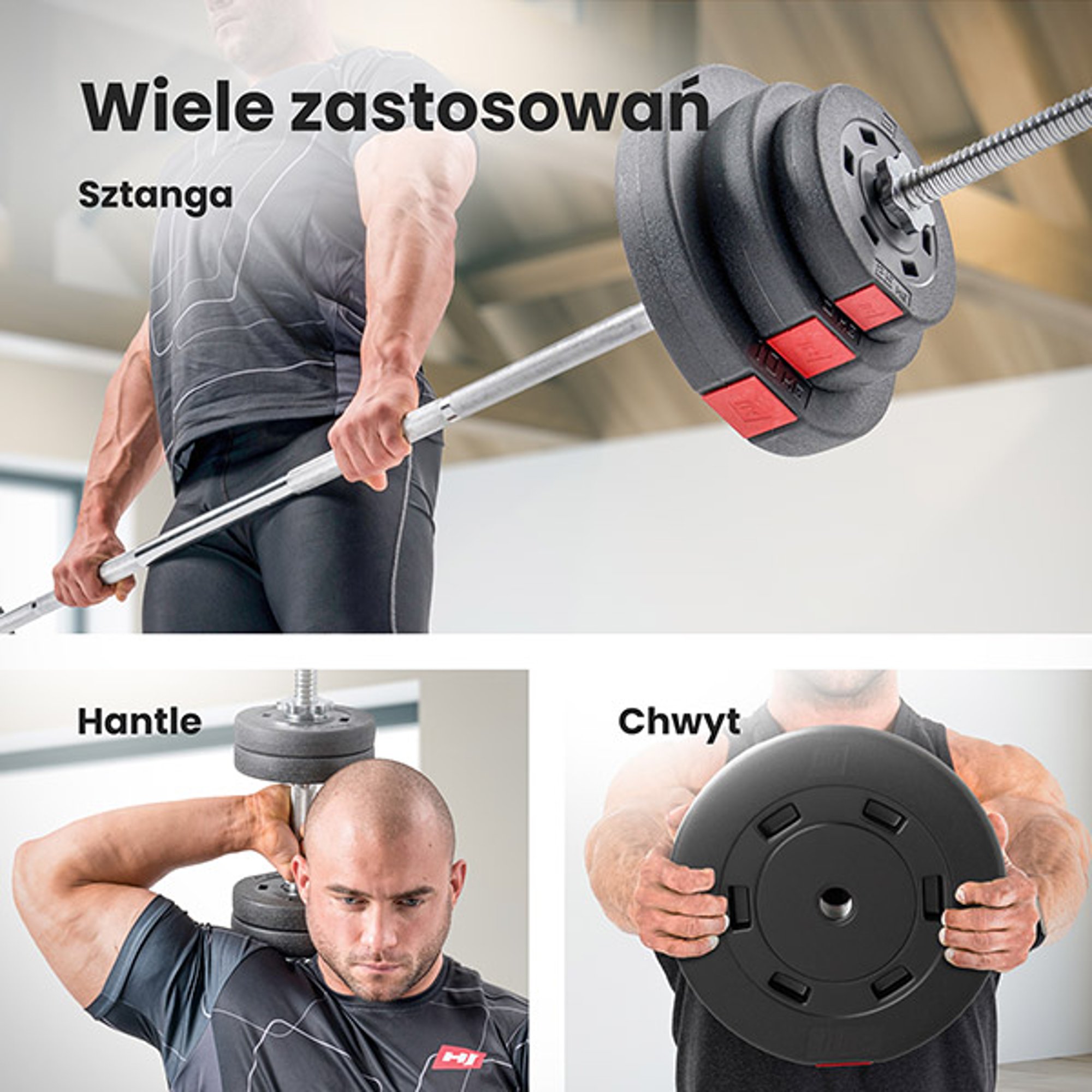 Wybierając obciążenia bitumiczne masz kilka możliwości ich użycia. Możesz założyć je na gryf sztangi lub hantli i wykonać trening na wolnych ciężarach. Nic jednak nie stoi na przeszkodzie, abyś używał jedynie samych obciążeń do wykonywania ćwiczeń takich jak wznosy, rozpiętki czy przysiady.