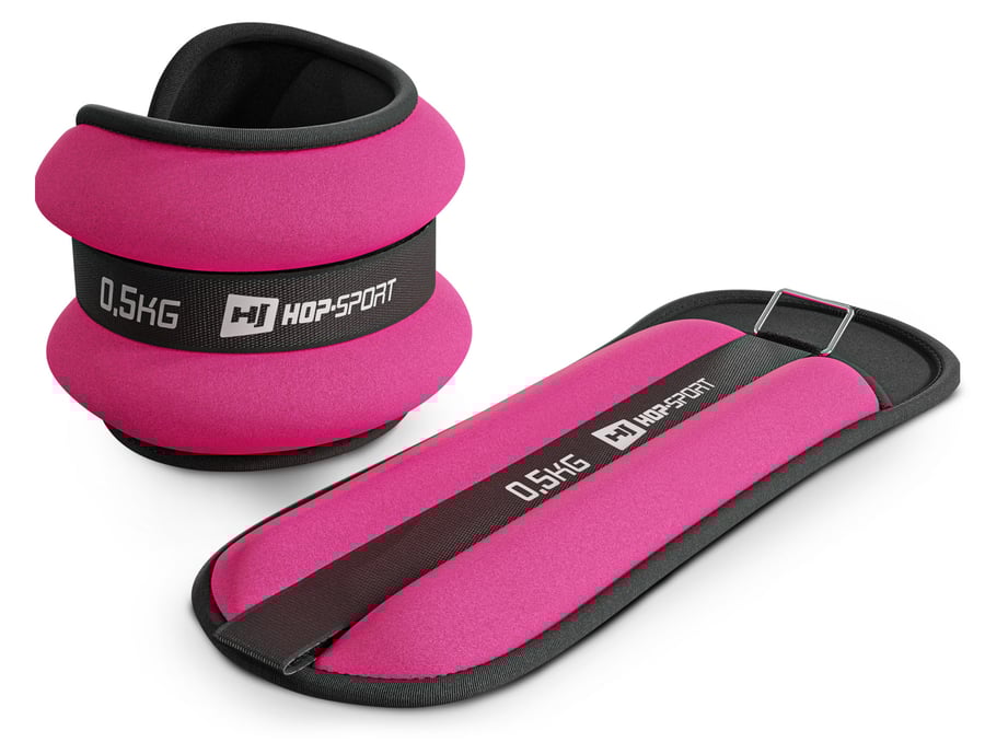 Zestaw dwóch obciążników na nogi i ręce HS-S001WB w kolorze różowym, po 0,5 kg każdy . Będzie idealnym dopełnieniem ćwiczeń aerobowych. Dzięki temu zestawowi urozmaicisz swój trening, zaangażujesz do pracy partie mięśni, których nie wykorzystujesz na co dzień. Obciążniki to neoprenowe opaski wypełnione specjalnym piaskiem. Zapięcia są regulowane na rzep - łatwo dostosujesz opaskę na nadgarstek, przedramię, czy łydkę. Obciążniki należą do akcesoriów tzw. lekkiego fitnessu. Pomogą Ci zadbać o formę , wyrzeźbić sylwetkę i wyrobić zdrowe nawyki. Dzięki niewielkim wymiarom możesz zabrać je ze sobą dosłownie wszędzie.