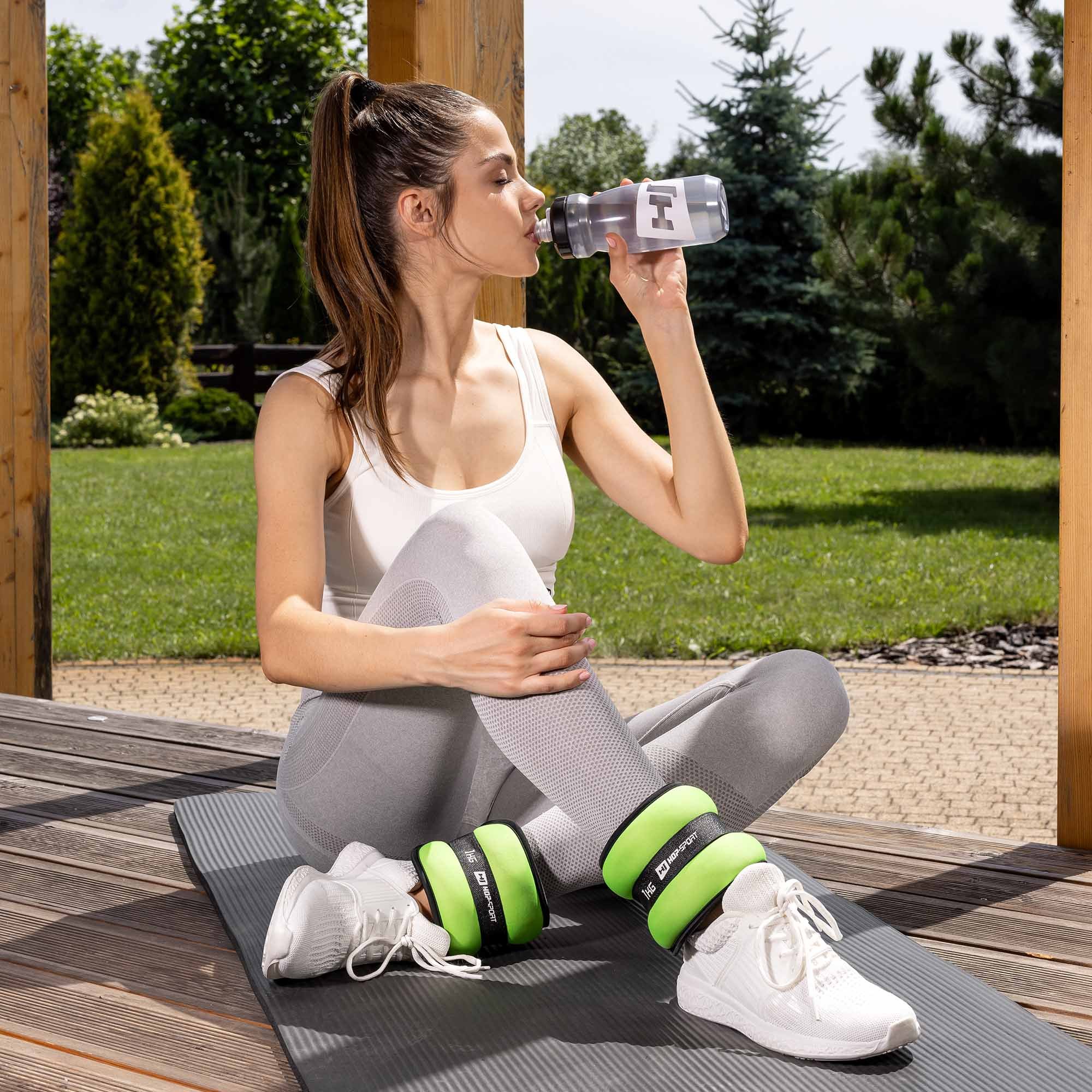 Zestaw dwóch obciążników na nogi i ręce HS-S001WB w kolorze zielonym, po 1 kg każdy . Perfekcyjnie dopełni Twój trening aerobowy. Dzięki obciążeniom urozmaicisz swój trening, zaangażujesz do pracy partie mięśni, których nie wykorzystujesz na co dzień. Zestaw składa się z dwóch neoprenowych opasek wypełnione specjalnym piaskiem. Zapięcia na rzep - łatwo dostosujesz rozmiar opaski do nadgarstków, czy kostek. Obciążniki należą do akcesoriów tzw. lekkiego fitnessu - taki trening pozwoli Ci wzmocnić mięśnie i poprawić kondycję. Dzięki niewielkim wymiarom obciążniki możesz zabrać ze sobą gdziekolwiek chcesz.