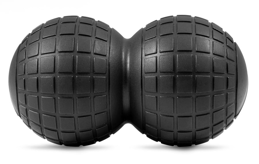Podwójna piłeczka do masażu EVA 10,5cm czarna do masażu punktowego różnych części ciała. Przeznaczona dla każdego kto odczuwa napięcie i ból mięśni.