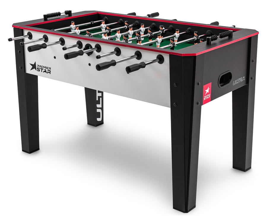 to stół do gry w piłkarzyki najwyższej jakości. Piłkarzyki to popularna gra domowa i klubowa, która dostarcza niezapomnianych emocji! Stół Ultra jest bardzo stabilny i wytrzymały, nogi stołu wykonane zostały z profili zamkniętych, a prowadnice są pełne i chromowane. Dzięki takiej budowie stół do gry w piłkarzyki zachowuje stabilność nawet podczas dynamicznych i emocjonujących rozgrywek, a użytkowanie stołu będzie czystą przyjemnością przez długie lata.