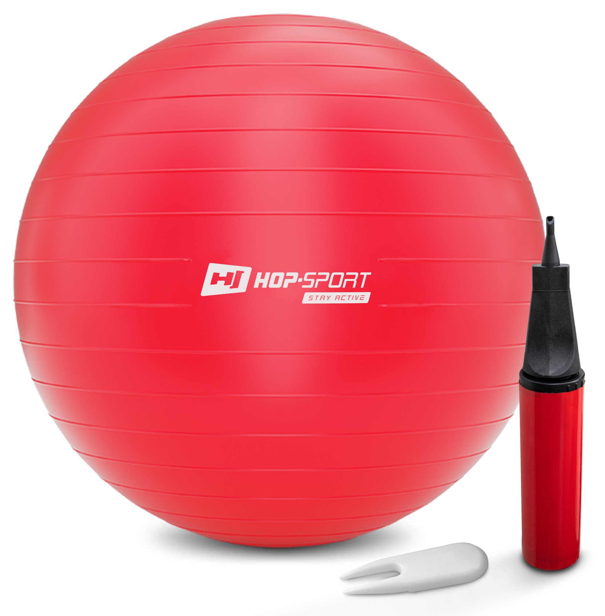 Piłka fitness 75cm - czerwona. Trening z nią poprawia ogólną kondycję organizmu, piłka wykonana jest z wytrzymałej, elastycznej gumy z pompką w zestawie