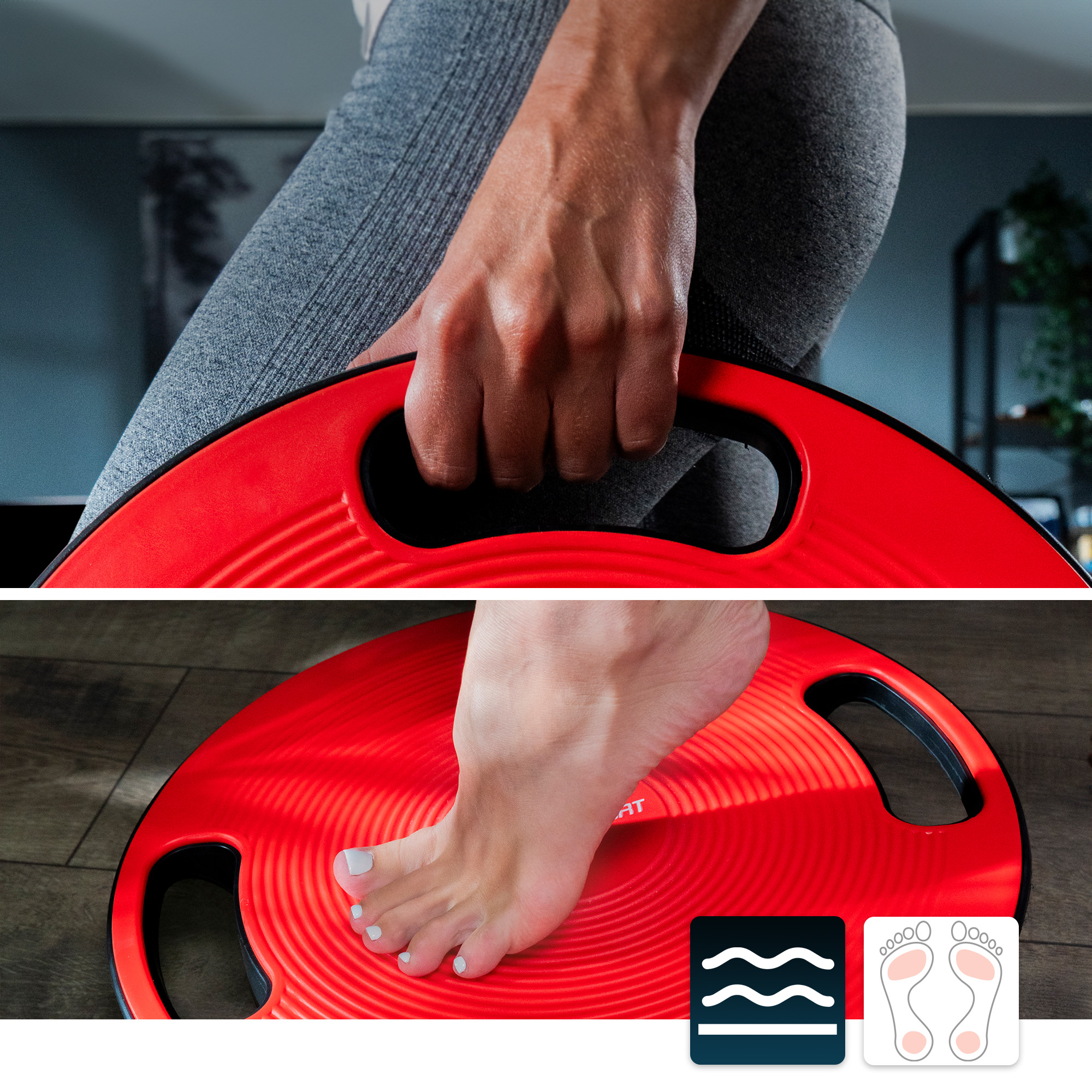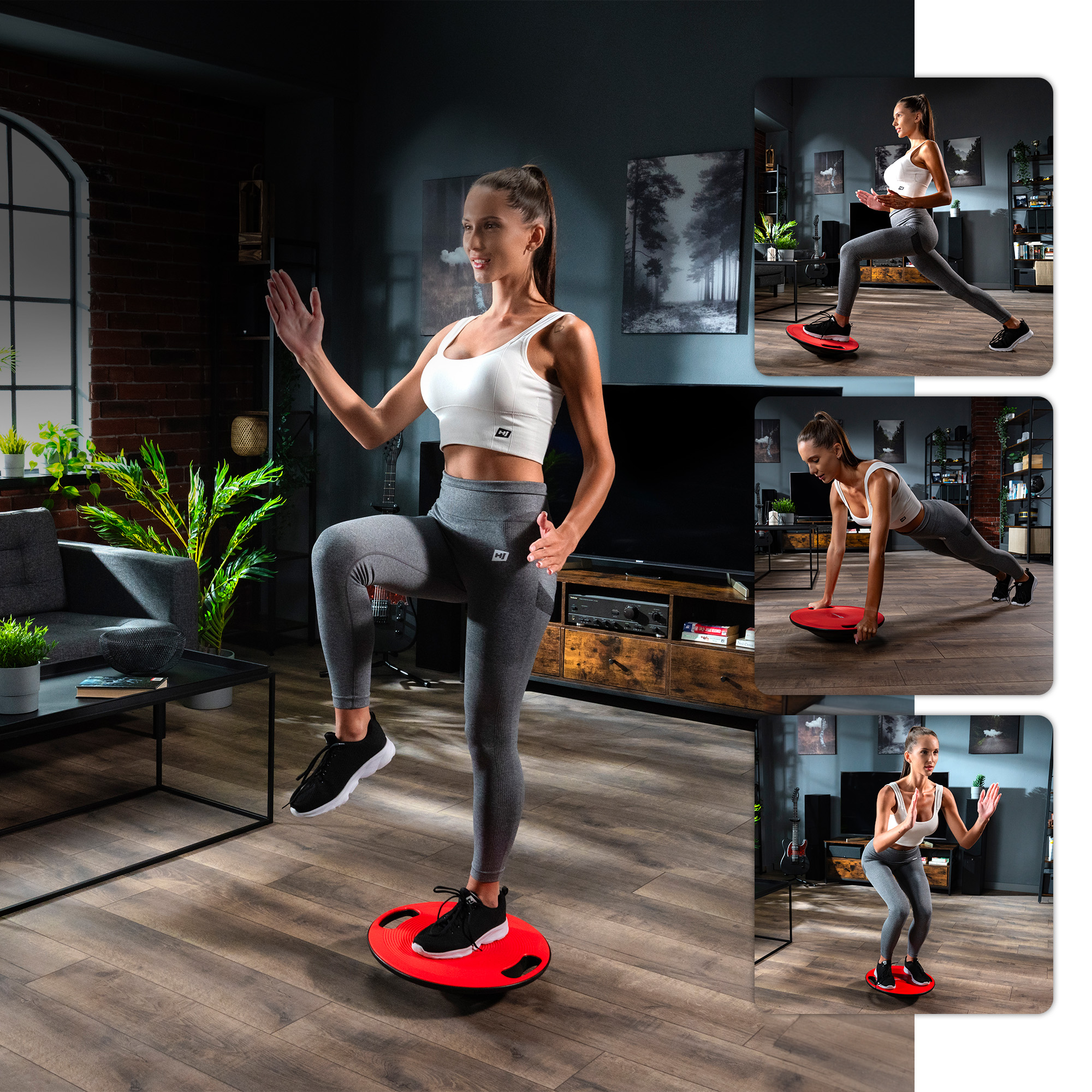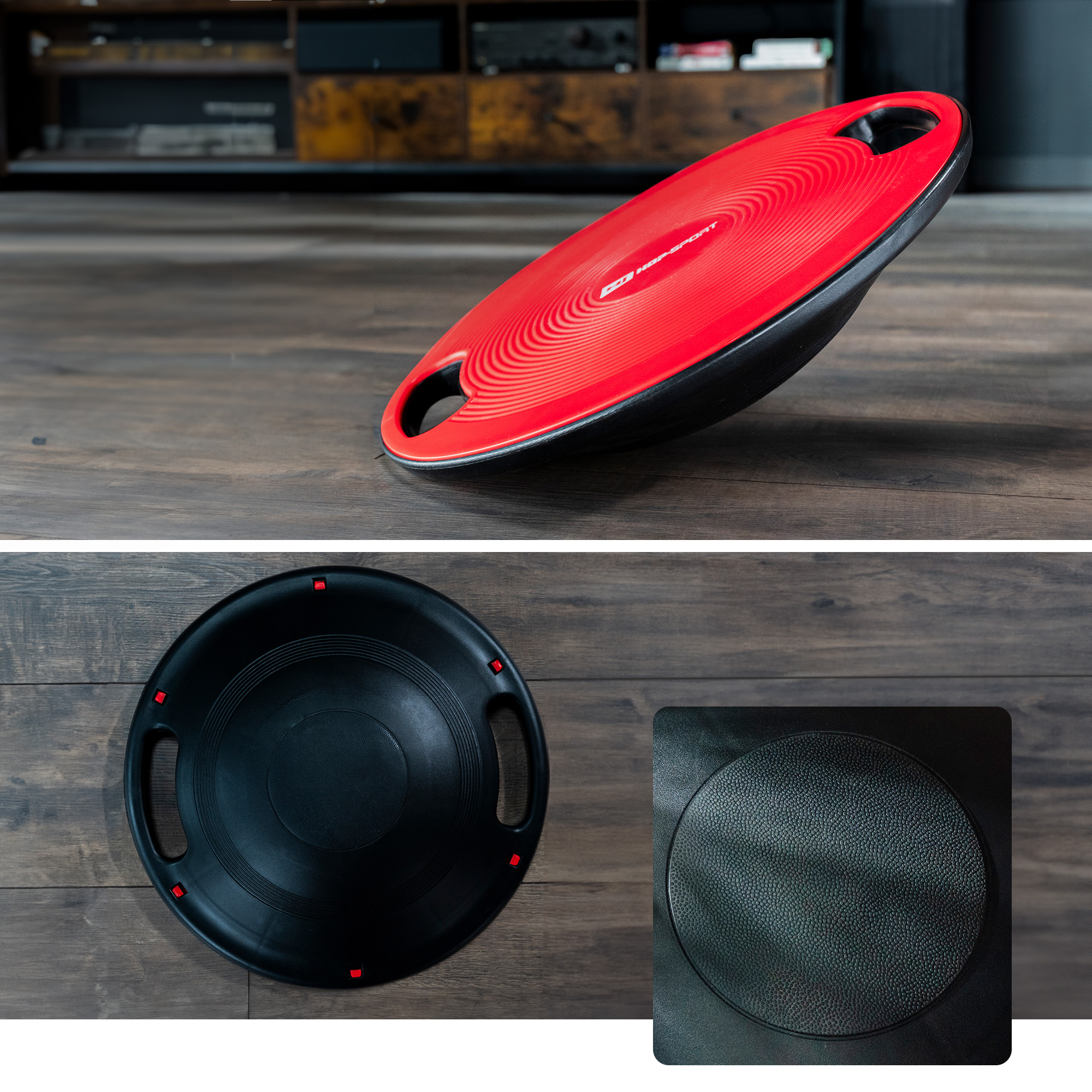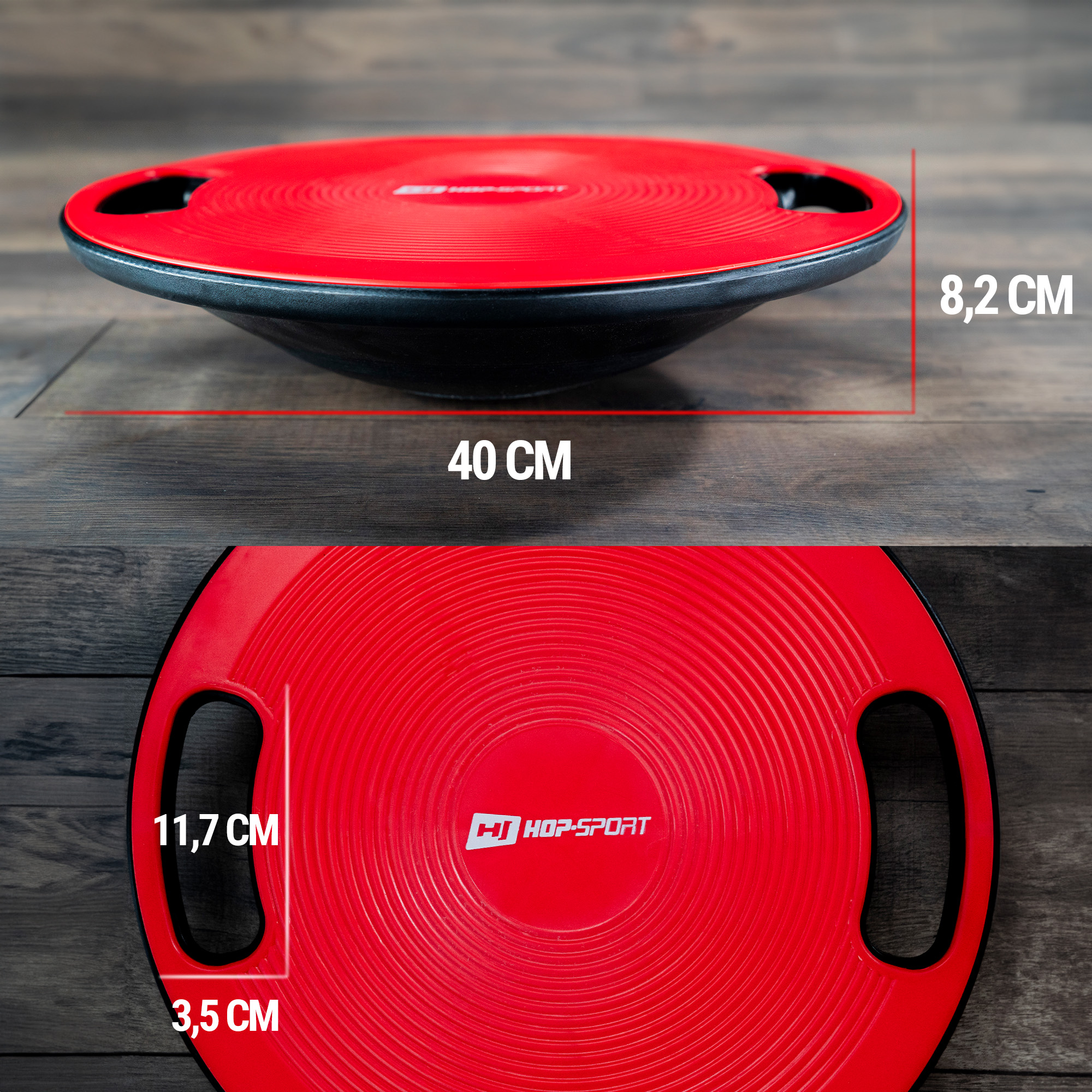 Platforma do balansowania czerwona marki Hop-Sport o średnicy 40 cm , została opracowana w taki sposób, aby umożliwić Ci wykonywanie różnych ćwiczeń, zarówno w pozycji pionowej, stojąc na dysku, jak i poziomej, opierając się na rękach. Wykonana z wysokiej jakości materiału syntetycznego - bezwonnego, nie absorbującego wody i odpornego na pękanie - będzie służyła przez długi czas, a zastosowanie dodatkowej antypoślizgowej powłoki , zapewni Ci bezpieczeństwo podczas treningu.
