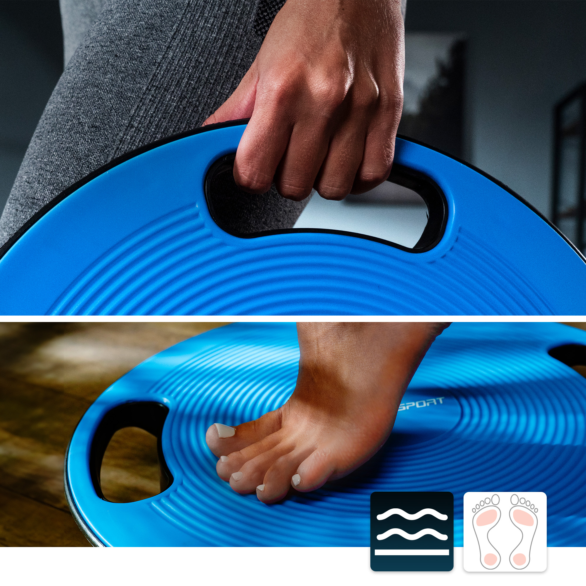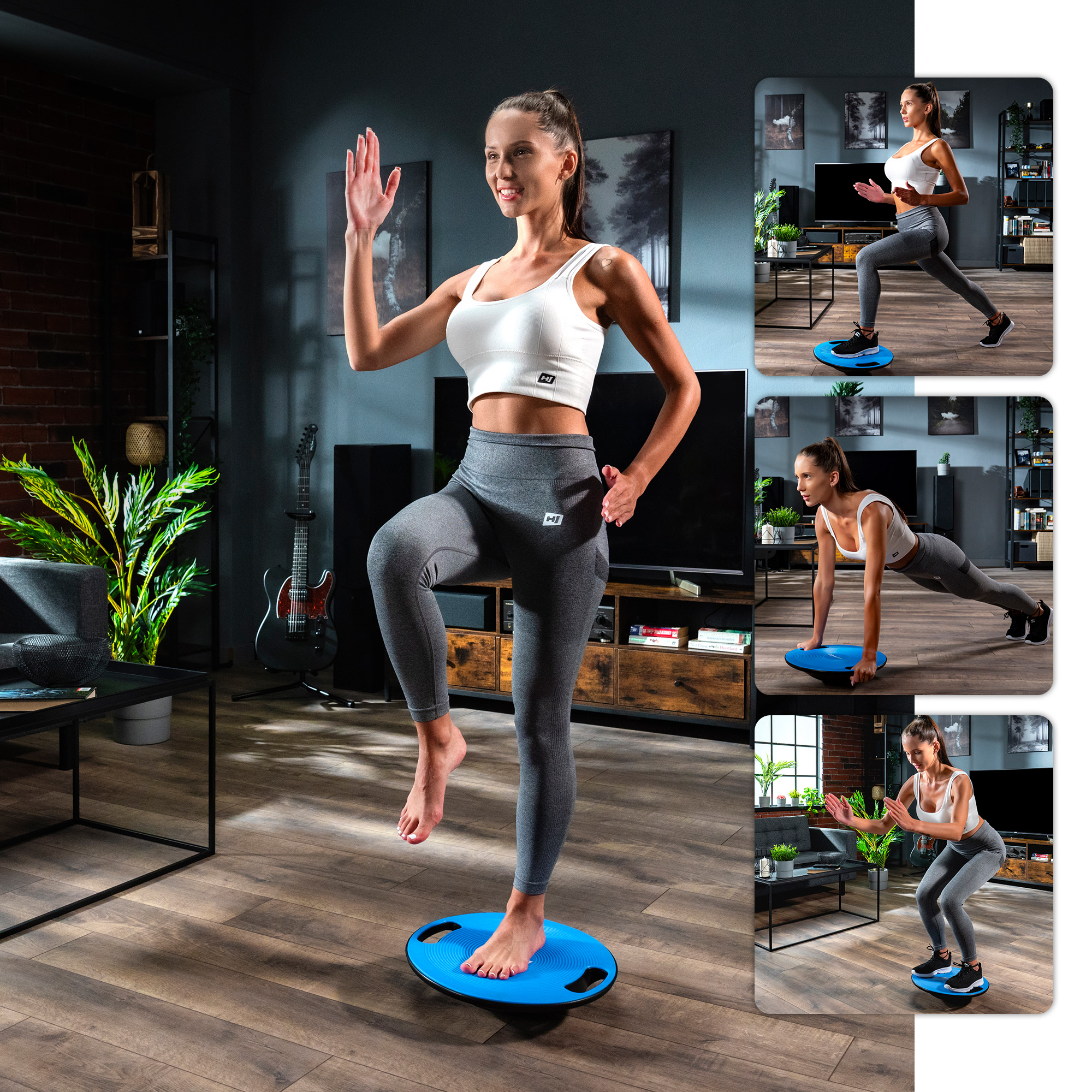 Platforma do balansowania niebieska marki Hop-Sport o średnicy 40 cm , została opracowana w taki sposób, aby umożliwić Ci wykonywanie różnych ćwiczeń, zarówno w pozycji pionowej, stojąc na dysku, jak i poziomej, opierając się na rękach. Wykonana z wysokiej jakości materiału syntetycznego - bezwonnego, nie absorbującego wody i odpornego na pękanie - będzie służyła przez długi czas, a zastosowanie dodatkowej antypoślizgowej powłoki , zapewni Ci bezpieczeństwo podczas treningu.