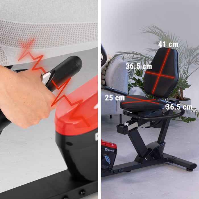 Dzięki regulowanej odległości siodełka od pedałów idealnie dopasujesz rower do swojego wzrostu. W HS-060L Pulse siadasz wygodnie na szerokim siodełku z wyprofilowanym oparciem, kładziesz stopy na pedałach, wyposażonych w paski stabilnie utrzymujące stopy i zaczynasz trening. Siodełko kształtem przypomina serce, przez co pozwala na swobodne ruchy ud, które jednocześnie nie kolidują z rękami na uchwytach kierownicy.