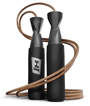 Skakanka skórzana Hop-Sport o długość linki 275 cm. Dzięki wygodnym uchwytom, systemowi łożysk i skórzanej lince praca skakanki jest szybka i sprawna