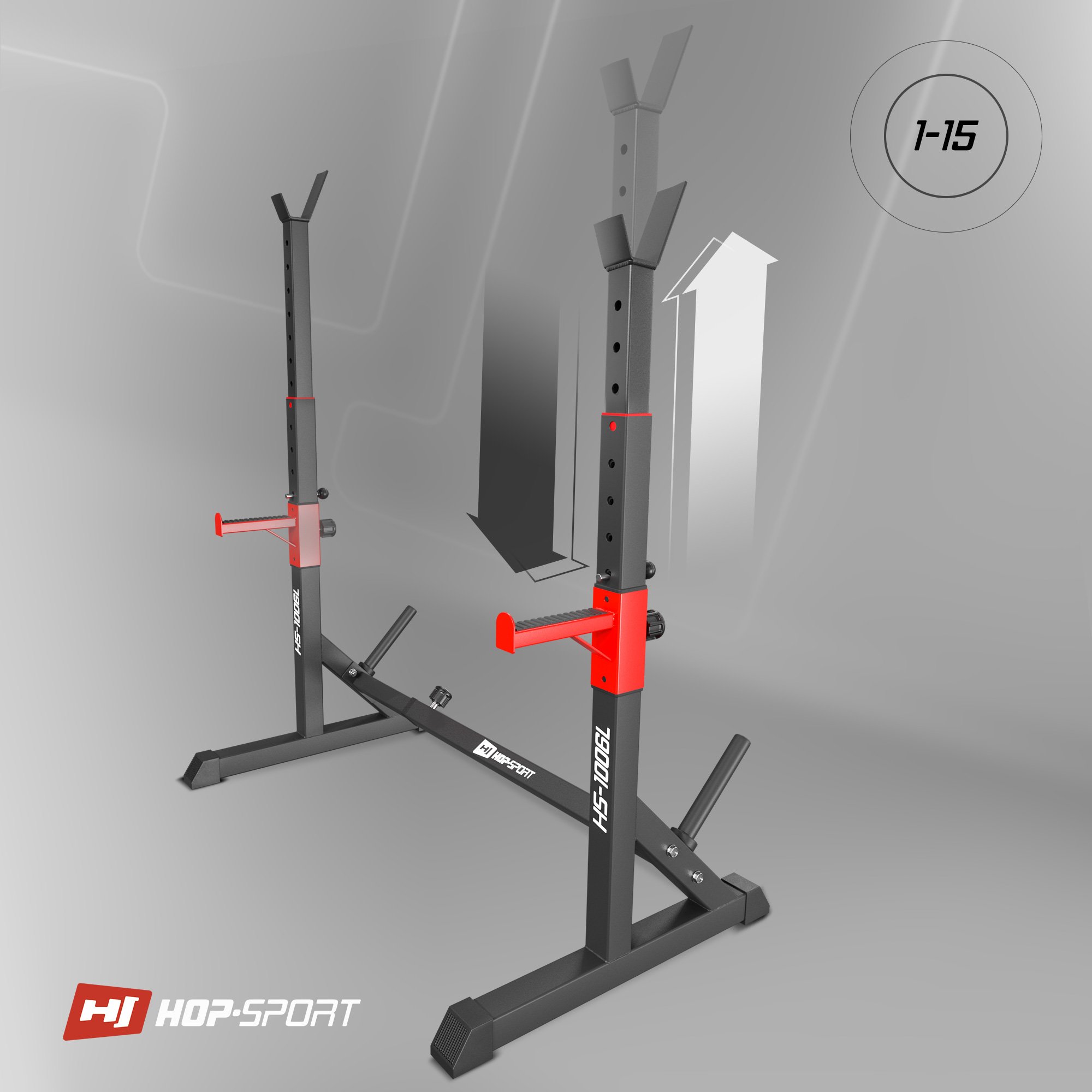 Istotnym kryterium wyboru stojaków jest możliwość regulacji rozstawu. W modelu HS-1006L masz możliwość 6-stopniowej regulacji rozstawu w zakresie od 85 do 111 cm. Możesz ćwiczyć z wieloma rodzajami sztangi, dostosować szerokość do ćwiczeń z ławką lub przysiadów ze sztangą.