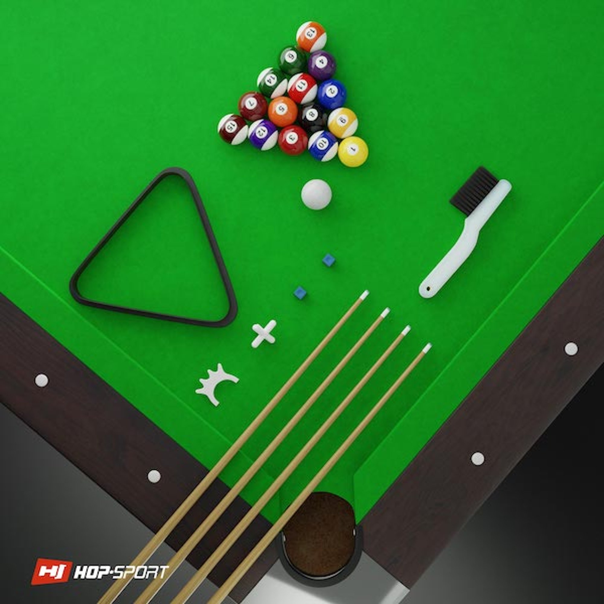 Pole gry wykonane jest z wysokiej jakości płyty MDF o grubości 18 mm, pokrytej 300 gramowym poliestrem w kolorze zielonym. Brzegi stołu wyprodukowano z mocnego tworzywa PVC. Rama stołu wykonana jest z solidnej płyty MDF a narożniki zabezpieczono trwałym tworzywem. Nogi z mocnej płyty wiórowej o przekroju "L", wyposażone są w śruby poziomujące oraz regulujące wysokość stołu