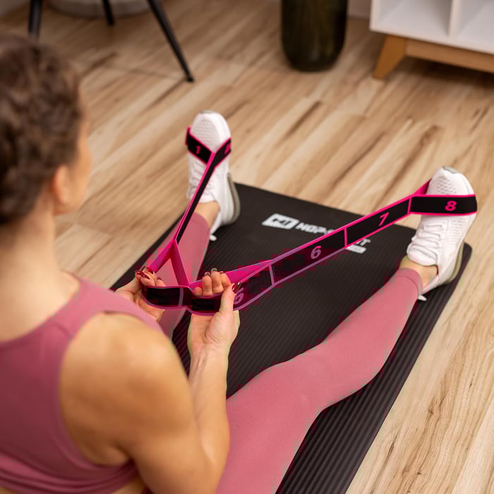 Guma gimnastyczna do rozciągania HS-N904GB różowa marki Hop-Sport to zajmujące niewiele miejsca akcesorium o uniwersalnym zastosowaniu. Możesz zabrać ją ze sobą wszędzie! Idealnie sprawdzi się w treningu fitness, jodze, pilatesie czy rozciąganiu. Taśma sprawdzi się jako dodatek do ćwiczeń siłowych. Ćwiczenia z gumą gimnastyczną wzmacniają i uelastyczniają mięśnie, dzięki czemu trudniej nabawić się kontuzji. Guma może być przydatna przy problemach z kręgosłupem i napięciem obręczy barkowej.