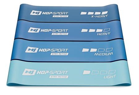Zasada działania taśm oporowych polega na tym, że im mocniej je rozciągasz, tym większy generują opór. Dzięki temu możesz z łatwością dopasować obciążenie do etapu treningu, na którym właśnie się znajdujesz. Każda z czterech gum, zawartych w zestawie HS-L675RLB, generuje inny zakres obciążenia – od najjaśniejszej do najciemniejszej: 4,5-7 kg, 7-9 kg, 11,5-14 kg , 14-19 kg.