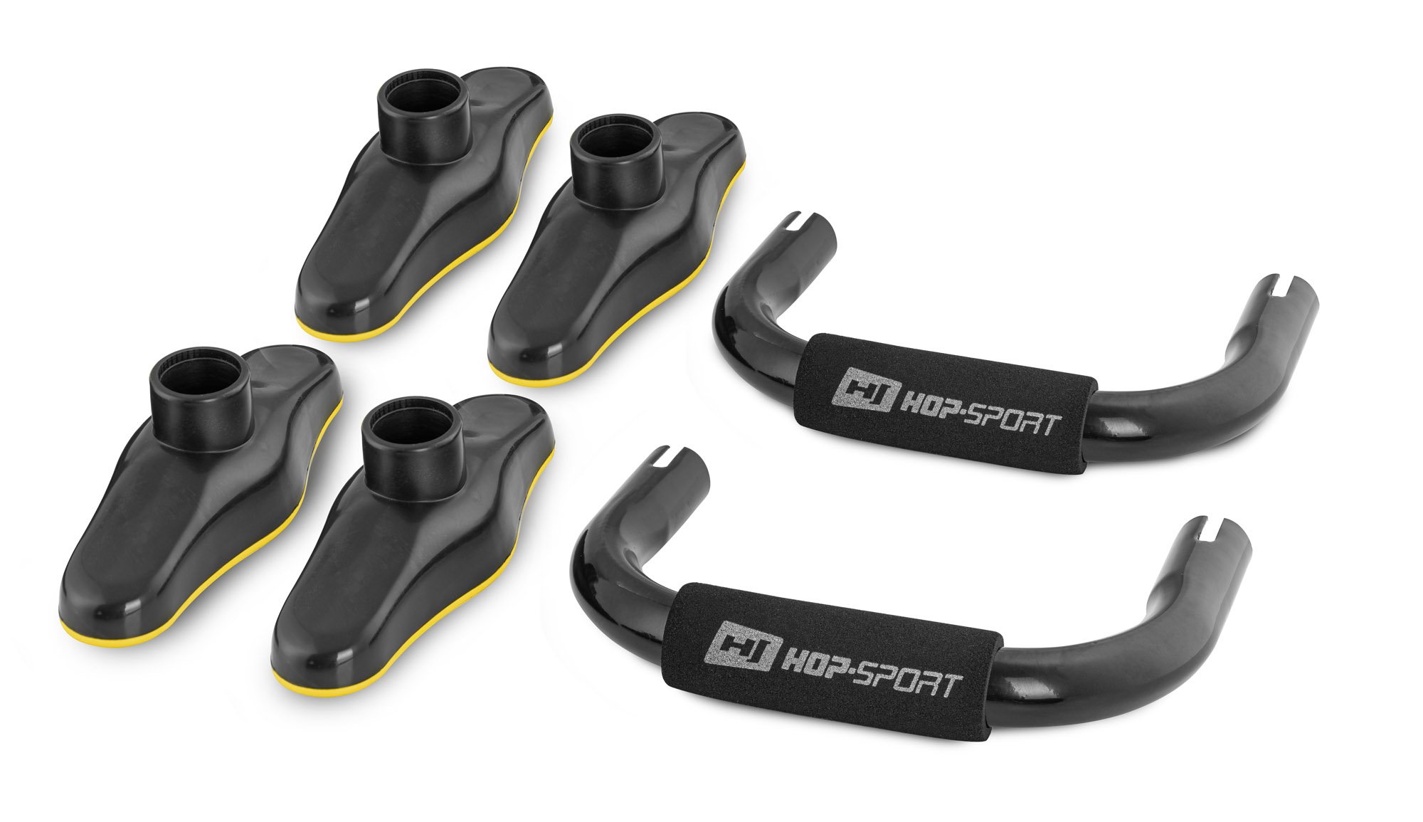 Uchwyty HS-M020PU to uniwersalny i niezwykle funkcjonalny sprzęt, polecany zarówno do treningu kobiet, jak i mężczyzn. Umożliwiają budowanie efektownej muskulatury ramion (bicepsy i tricepsy), przedramion, barków, klatki piersiowej, grzbietu, brzucha i ud. Najczęściej wykorzystywane są do wykonywania pogłębionych pompek, lecz możesz wykorzystać je również do wielu innych ćwiczeń, których celem jest rzeźbienie mięśni.