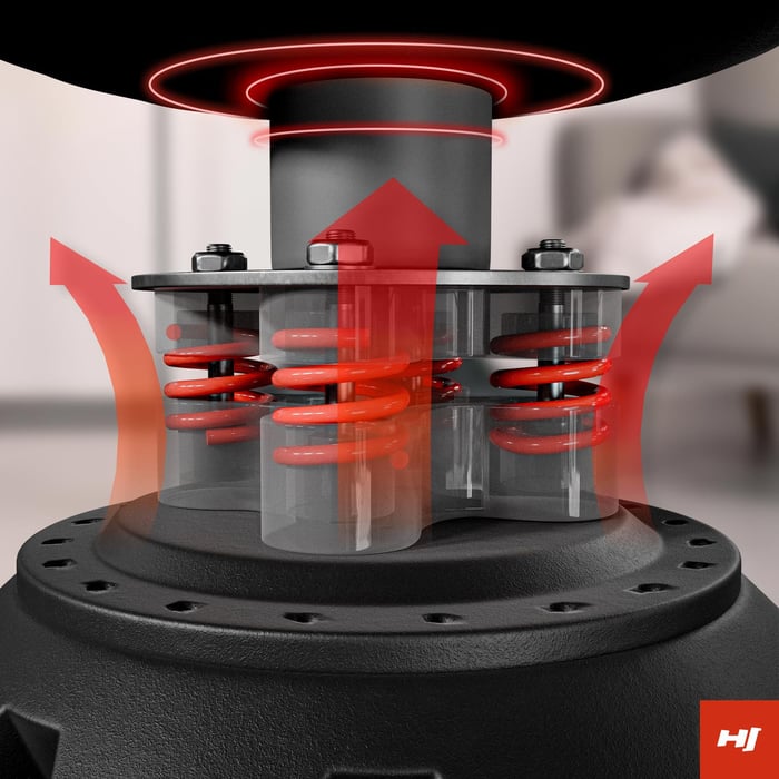 umieszczonych u podstawy worka, z dodatkowymi odbojnikami po obu stronach. W momencie zadawania ciosu, sprężyny reagują, cofając się do tyłu, a odbojniki