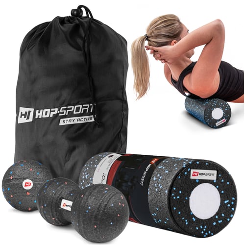 Zestaw akcesoriów do masażu EPP czarny marki Hop-sport, dzięki któremu wykonasz skuteczny i precyzyjny masaż powięziowy. Masaż przy pomocy piłeczek i wałka EPP pomoże rozluźnić i zregenerować ciało. Zestaw sprawdzi się w masażu mięśni pleców i karku, a także innych punktów na ciele, w których odczuwasz napięcie lub potreningowe zakwasy. Zestaw zalecany jest zarówno dla osób aktywnych fizycznie, jak i tych prowadzących siedzący tryb życia. Znajdzie także zastosowanie w rozgrzewce przed treningiem oraz w rehabilitacji. Niewielki rozmiar sprawia, że zestaw jest łatwy w transporcie – bez problemu zmieści się do torebki lub plecaka.